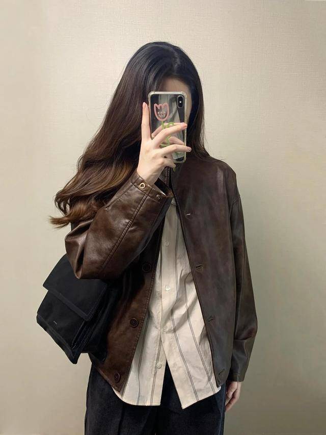 首推的绝对是今年风头正盛的皮革夹克,它堪称春日衣橱里的“万能ACE”。无论是经典的深咖色还是酷感十足的黑色,都自带复古又利落的气场,轻松适配从通勤到周末出游的各种场景。