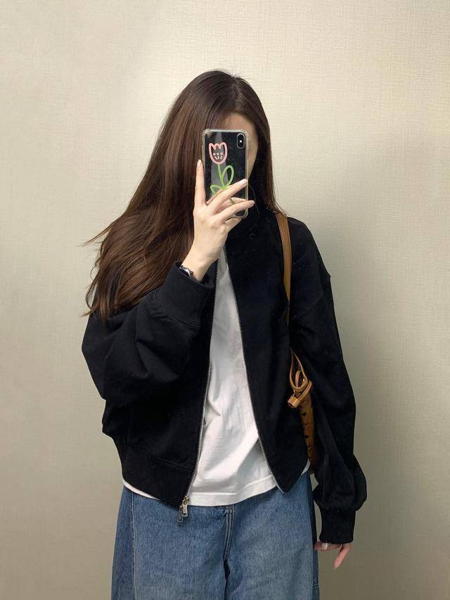 除了外套和毛衣,一些过渡性的单品也能让春日穿搭更有层次。比如一件黑色的棒球夹克,内搭白T和牛仔裤,青春感十足;灰色的背带裙叠穿浅灰T恤,再配上一只小巧的黑色斜挎包,减龄又俏皮。这些单品看似简单,却能通过不同的组合,衍生出无限可能。