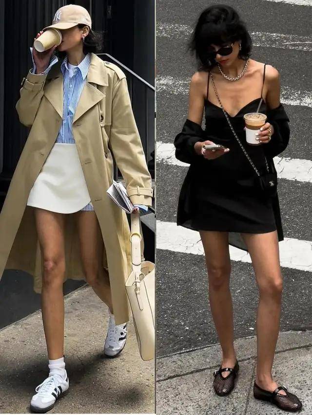 外搭一件西装或风衣,配平底单鞋或低跟鞋,既有大女主的干练气场,又自带飒爽气质。步履轻盈,自在如风,那份潇洒,只属于你自己。