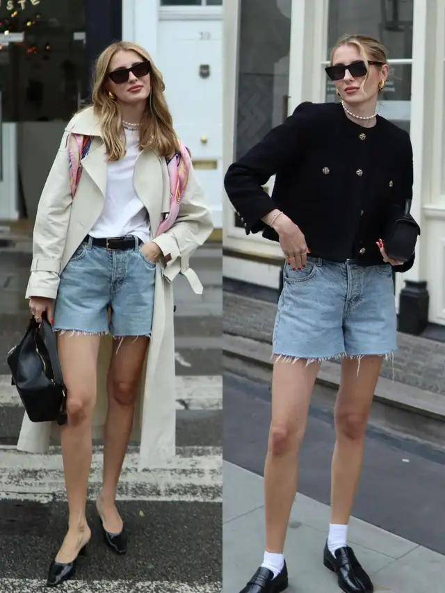 若是偏爱日常的穿衣风格,选择卡其色的风衣搭配上蓝色牛仔短裤,或是黑色小香风外套,搭配蓝色牛仔裤,脚踩皮鞋或浅口单鞋,就能让你变得精致又飒爽。