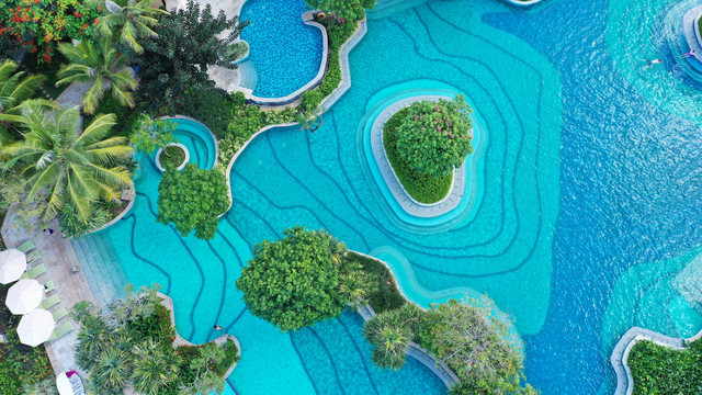 EAU泳池吧:游走在青葱的热带花园之中,不容错过主泳池旁的泳池吧,有小吃和创意鸡尾酒提供。