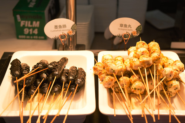 烧烤区还有法式鹅肝、法式羊排等,都有厨师帮忙煎好,排队领取。鹅肝和羊排很推荐,不要问我为什么~熟食区域也有各种美食,煲汤类、烧烤类,品种非常多样。