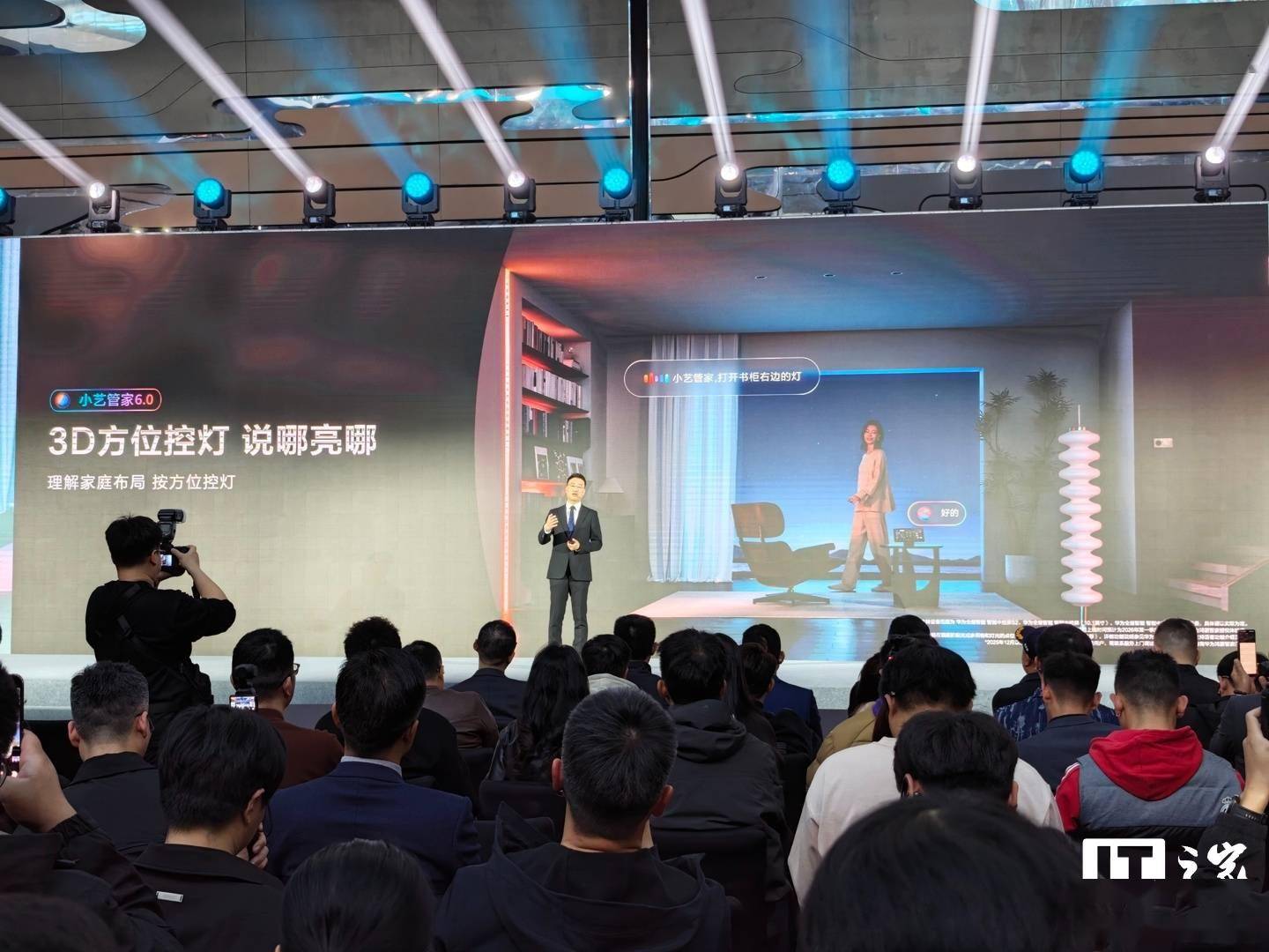 IT之家从沟通会现场获悉,小艺管家 6.0 实现了 3D 方位控灯,可理解家里的设备布局,实现“说哪亮哪”。比如,用户可以说“小艺管家,打开书柜右边的灯”。