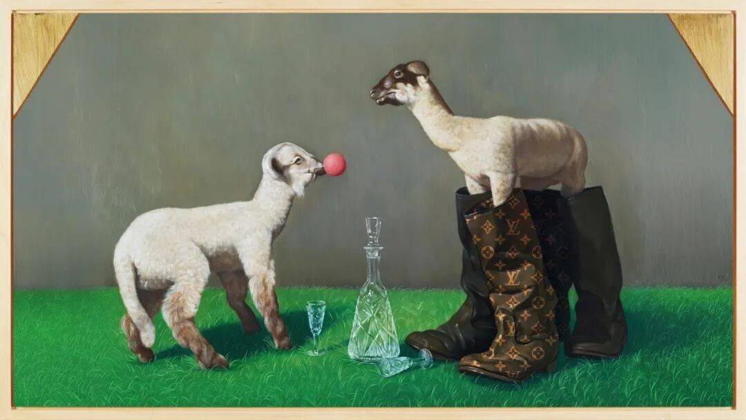 这一季,Nicolas Ghesquière将这些来自“过去”,记录着品牌根基的意象进行重构,预告片中就已经释放了他的巧思:邀请乌克兰艺术家Nazar Strelyaev-Nazarko合作,以古典油画形式描绘羊、靴子、草地等游牧意象,荒诞有趣但又富有艺术张力。
