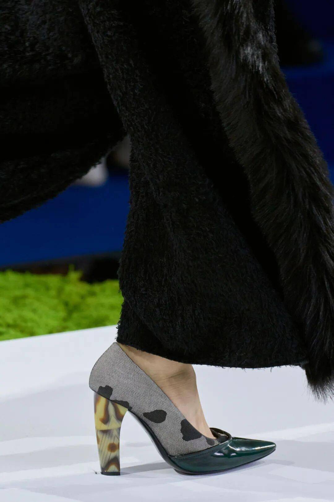 本季的细节十分值得玩味:由3D打印制造出的纽扣、鞋跟,前者仿佛河道中历经洗练的矿石,后者像是充满力量的鹿角。以另一种形式,在现代都市中实现了对自然的转译。
