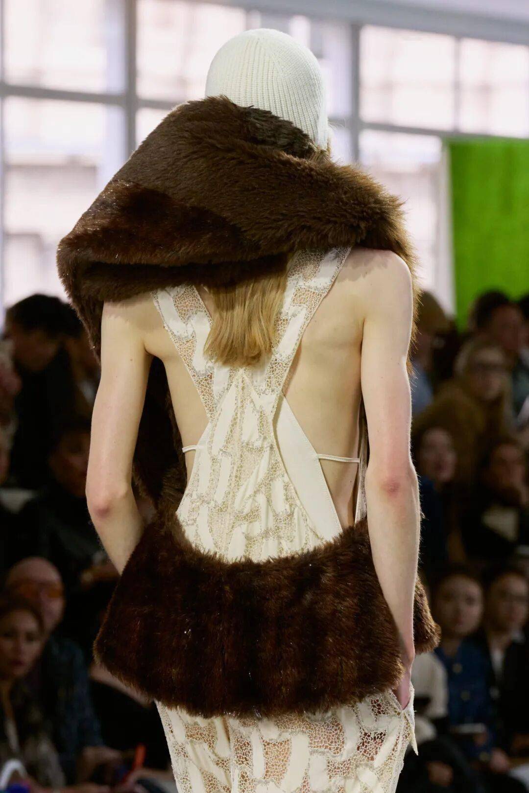 大量植物皮草元素的使用,则体现了环保与人文情怀,无论时装技术发展得如何先进,对于自然的敬畏和保护,是应该一直传承的理念。