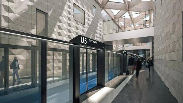 充足的自然光线和玻璃幕墙的使用,使乘客能够清晰地看到车站周围的环境,不仅满足了U5 地铁线路运行的要求,也增强了乘客的安全感。