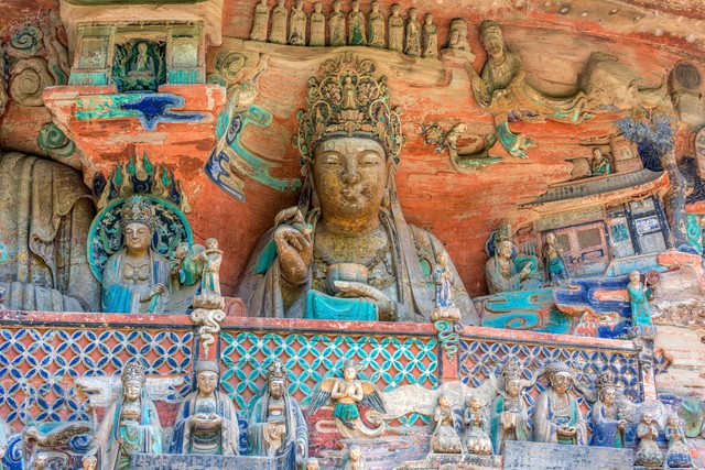 大足石刻位于重庆市大足区宝顶镇、龙岗镇,它是世界文化遗产,包含宝顶山、北山、南山等石刻群,以宝顶山石刻最具代表性,造像题材涵盖佛教、道教、儒家,“千手观音”“卧佛”等造像工艺精湛,神态生动。石刻群融合了唐宋时期的艺术风格,是研究中国古代宗教与艺术的重要宝库。最佳游玩时节为3-5月和9-11月,春秋季气温适宜,避开夏季多雨和冬季阴冷,便于长时间观赏。