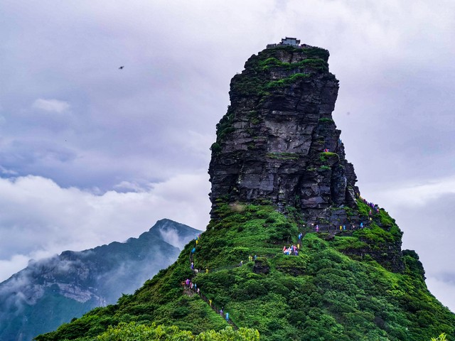 梵净山位于贵州省铜仁市江口县、印江土家族苗族自治县、松桃苗族自治县交界处,梵净山是佛教名山,也是世界自然遗产,标志性的“红云金顶”如石柱般矗立,顶端两座寺庙由天桥连接,险峻非凡。山间还有万米睡佛、蘑菇石等奇特地貌,生活着珍稀的黔金丝猴。最佳游玩时节为4-5月和9-10月,春季高山杜鹃盛开,秋季天气晴朗,能见度高,便于登顶赏景。