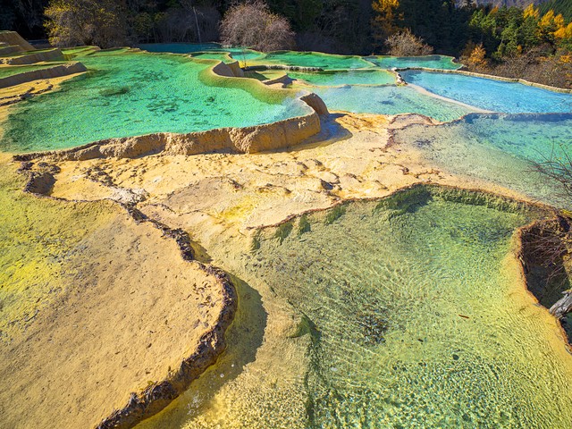 黄龙风景名胜区位于四川省阿坝藏族羌族自治州松潘县,它以“彩池、雪山、峡谷、森林”四绝闻名,数千个钙化彩池如梯田般排列,池水因矿物质含量不同呈现出黄、绿、蓝等色彩,被誉为“人间瑶池”。景区内还有黄龙古寺、牟尼沟等景点,生态环境原始。最佳游玩时节为6-8月,此时彩池水量充足,色彩最鲜艳;9-10月可赏彩林,冬季部分区域会封闭。