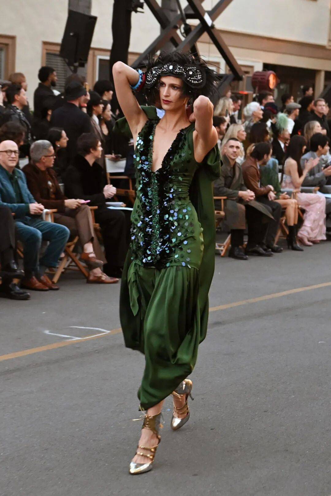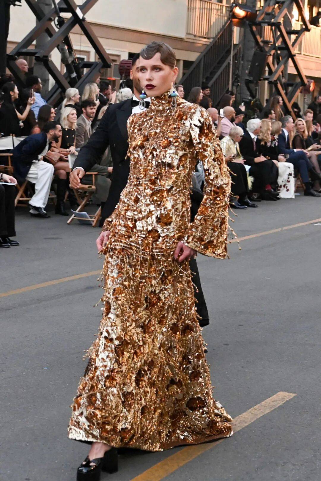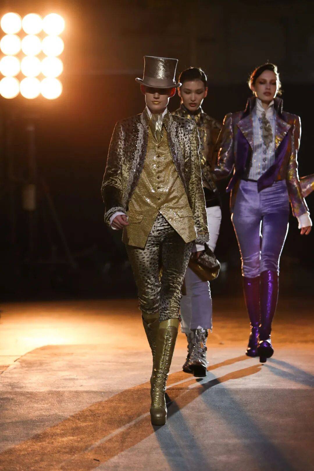 模特们身穿着《天鹅绒金矿》的戏服鱼贯而出。