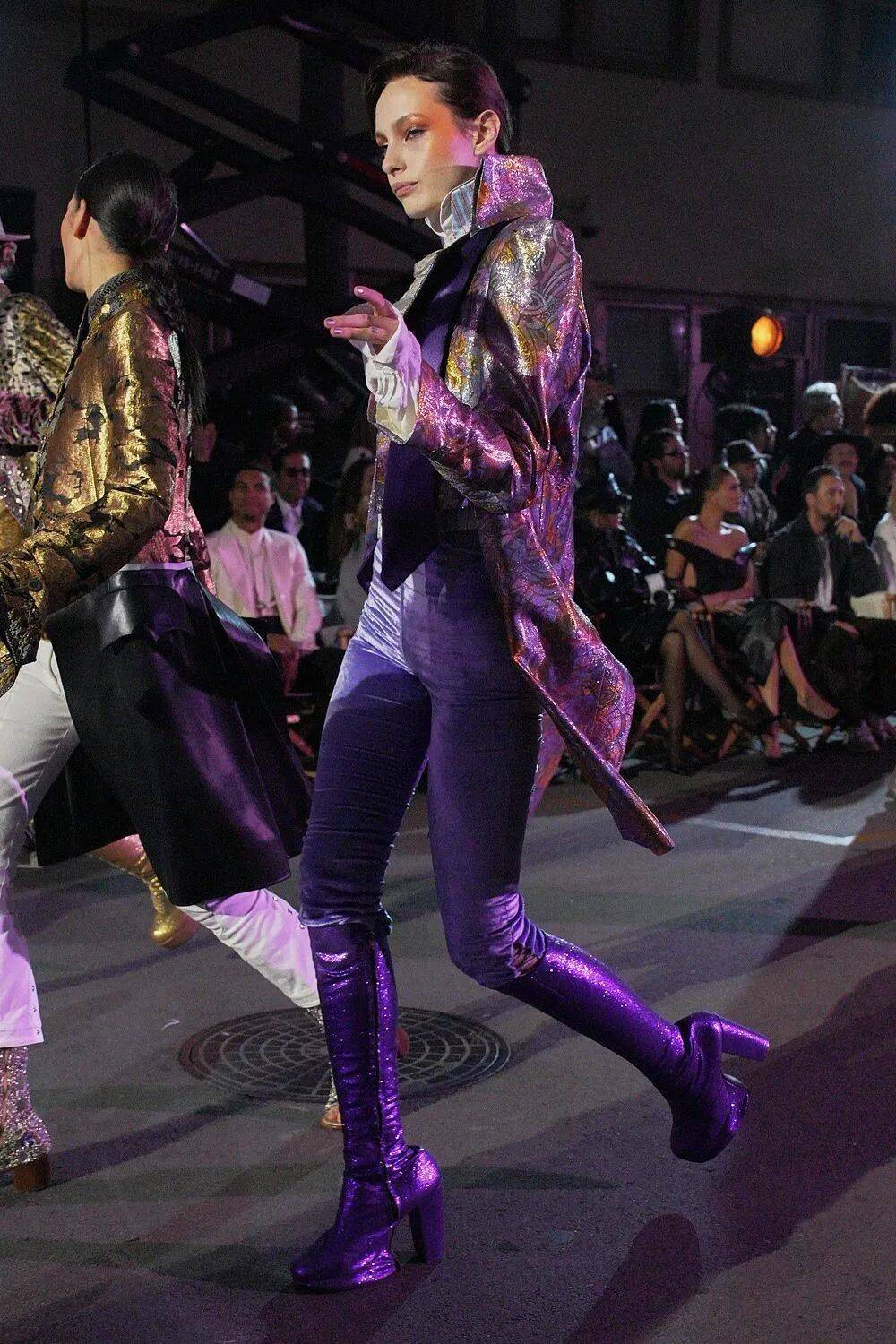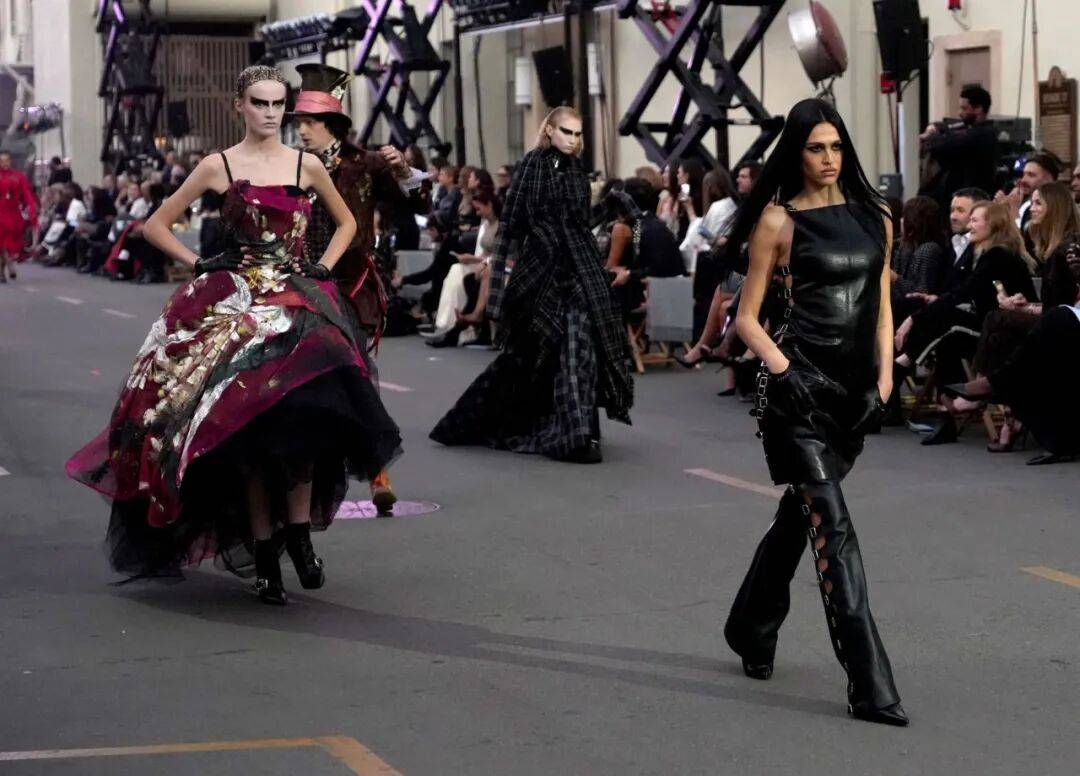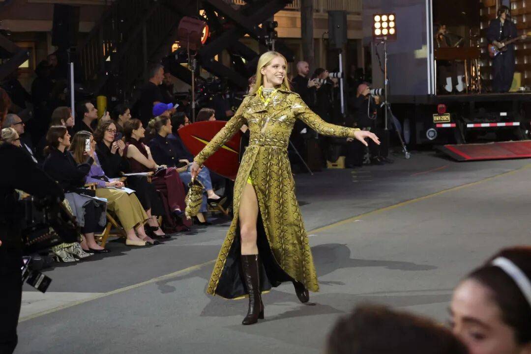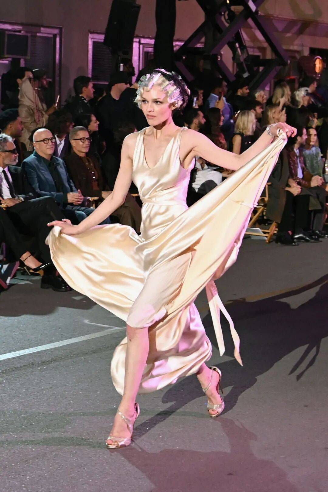 模特们身穿着《天鹅绒金矿》的戏服鱼贯而出。