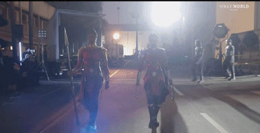 模特们穿梭,剧组人员经过,经典角色乱入。