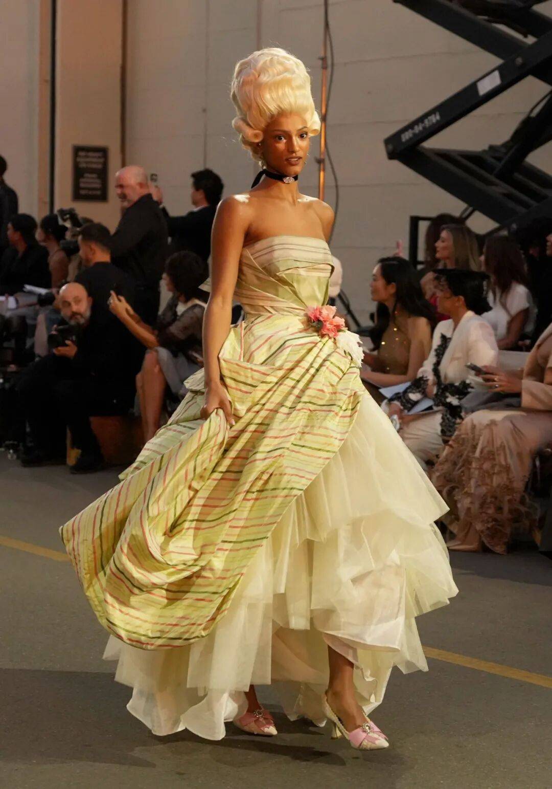 最后,大热超模Awar Odhiang身穿马吉拉的褶皱礼服闭秀。