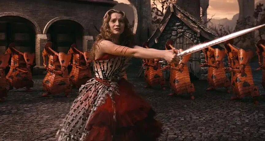 影片中,爱丽丝正是穿着这件衣服,手握宝剑对抗红皇后那荒诞的权威。