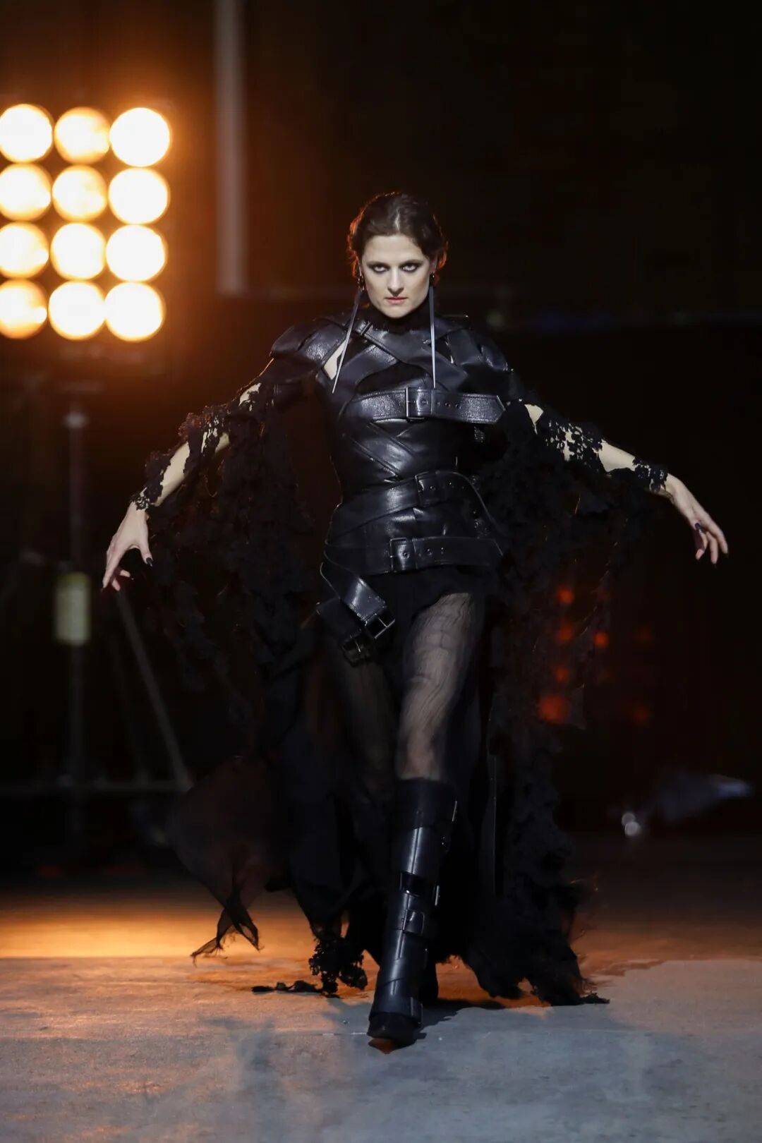 华伦天奴的层层叠纱和盔甲式上衣的反差。