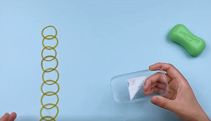 妙用 2:垫香皂 / 做皂盒 —— 香皂不泡软,能用更久 找 2-3 根皮筋,在香皂的侧面绕两圈,然后把香皂放在洗手台上,皮筋能把香皂和台面隔开,水分不会积在香皂下面,香皂就不会泡软;
