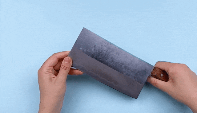 妙用 3:缠刀把 —— 切菜不粘刀,片状菜直接掉 切土豆片、黄瓜片时,菜总粘在刀背上,要手拨下来才敢继续切,奶奶用一根皮筋就解决了: 找一根皮筋,在菜刀的刀把和刀身连接处绕两圈,缠紧一点,让皮筋在刀背上凸起一点(不用太高,1 厘米左右就行); 切菜时,片状蔬菜会被皮筋挡住,不会粘在刀背上,切完直接掉在菜板上,不用手拨,又快又安全; 注意:别把皮筋缠在刀刃上,以免被刀割断,缠在刀把附近就行。