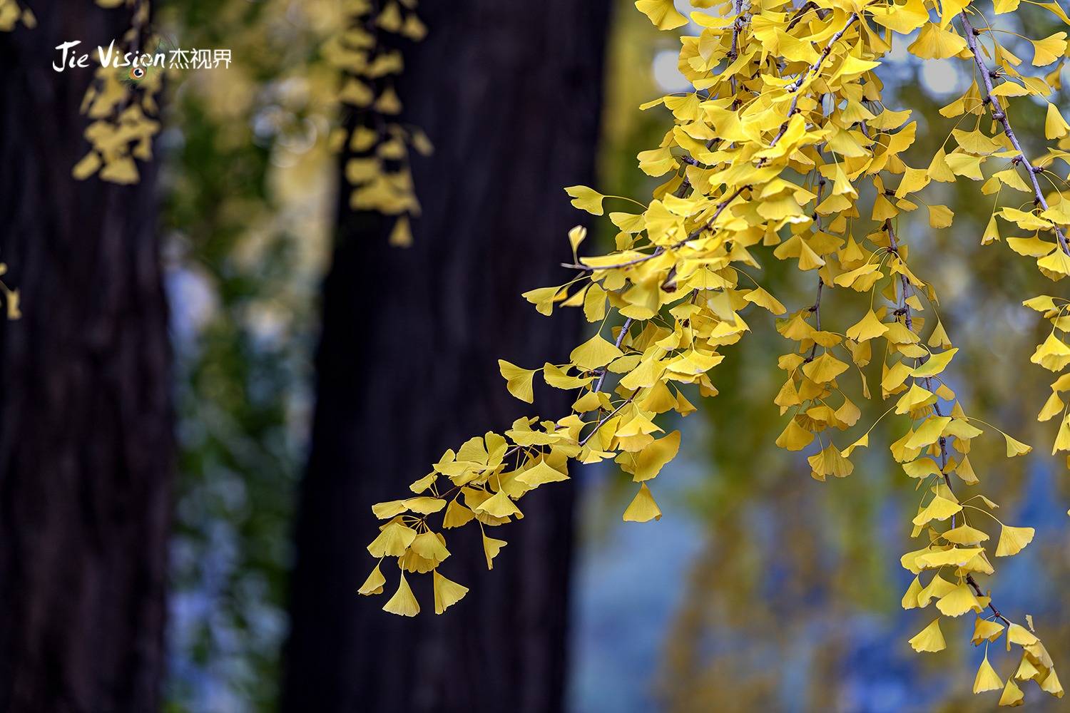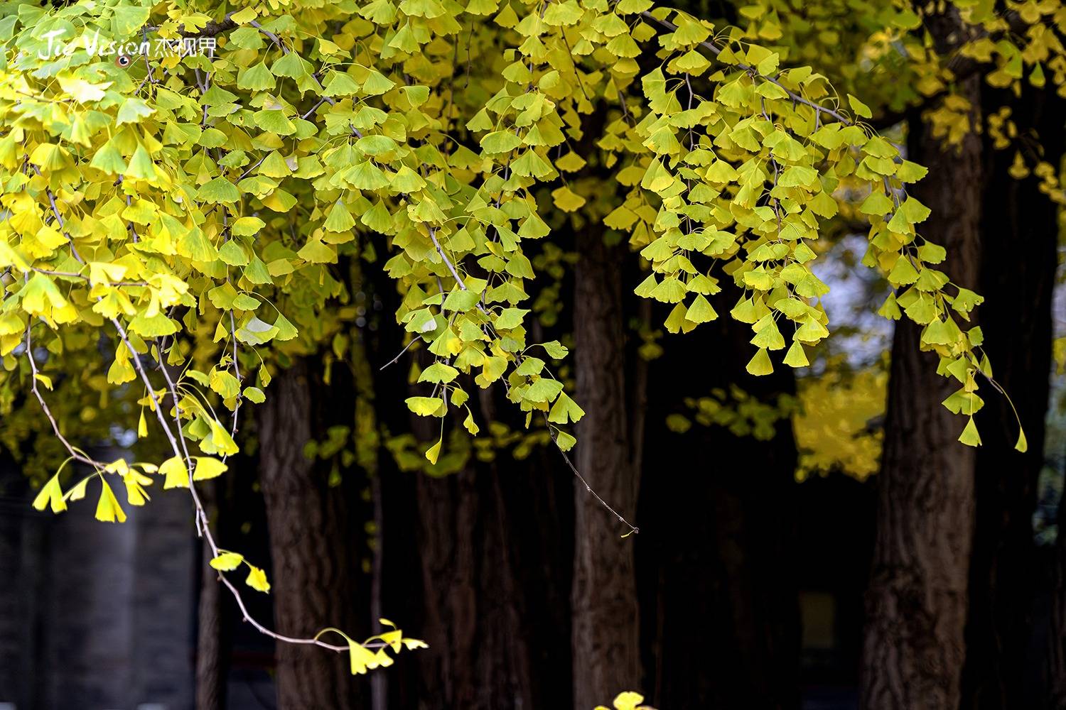 清晨的银杏叶沾着露水,晶莹如金箔;午后的树冠通体透亮,灿若云霞;傍晚时分,夕阳为金叶镀上暖光,与红墙碧瓦构成绝美画卷。细雨蒙蒙时,湿漉漉的叶片更显娇艳,雨打落叶声如诉千年往事。