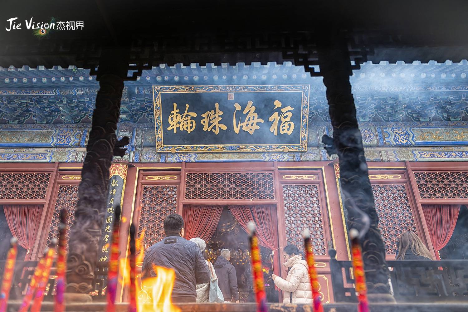 除了这两株古银杏,寺内枫树如火,松柏苍翠,与金黄银杏交织成浓墨重彩的秋日长卷。飞檐翘角在斑斓枝叶间隐现,梵音袅袅,香火缭绕,营造出离尘避世的宁静。