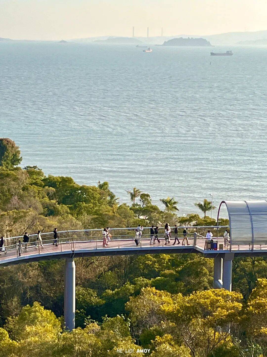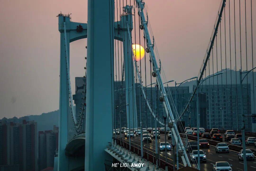 东渡牛头山公园 HE’LIO!AMOY 接下来这个地方可以说是厦门最浪漫的地方之一, 不仅可以看到“潮汐之眼”摩天轮在落日下转动,而且还能拍到海沧大桥与飞机同框的画面。