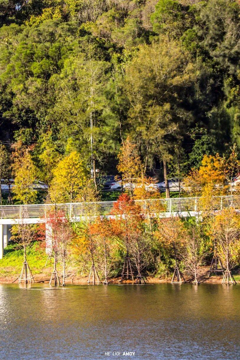 东山环廊是厦门山海健康步道林海线最值得打卡的点位之一,每逢冬天,不少行人前来打卡一片红彤彤的落羽杉。冬天正是落羽杉生长的季节,它们矗立在林间、湖岸边,宛若一簇簇燃烧的火焰,犹如一团团艳丽的羽毛。 门票:免费 交通:可以乘坐BRT到达东芳山庄站,跟着导航步行到BRT东芳山庄公交站,大约3分钟。再乘坐东坪山客运专线公交车;自驾的小伙伴也可以直接定位到东坪山公园。 Tips: 蚊虫较多,建议大家携带驱蚊用品。 建议穿运动鞋爬山,比较不容易累~ 乘坐东坪山客运专线的,一定要记得看好时间点,尤其是末班车;一定要排队,每趟车只可乘坐11人,不允许有站位,大概半小时一趟。沿路都可以看到东坪山上美丽的风景,有鲜艳夺目的三角梅。