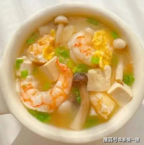 食材:冬瓜500克,猪骨500克,枸杞30克,生姜3片,料酒1大勺,食盐适量。 步骤: 处理排骨:猪骨洗净,入沸水中焯水,捞出清洗干净。 炖汤:锅中加水,放入猪骨、姜片和枸杞,加入料酒,烧开后撇去浮沫,转小火炖煮1小时。 加入冬瓜:冬瓜去皮切块,加入锅中继续炖煮30分钟,至冬瓜变软,汤味浓郁。 调味:最后加入食盐调味,出锅前可撒上些许葱花增香。 四、虾仁豆腐菌菇汤