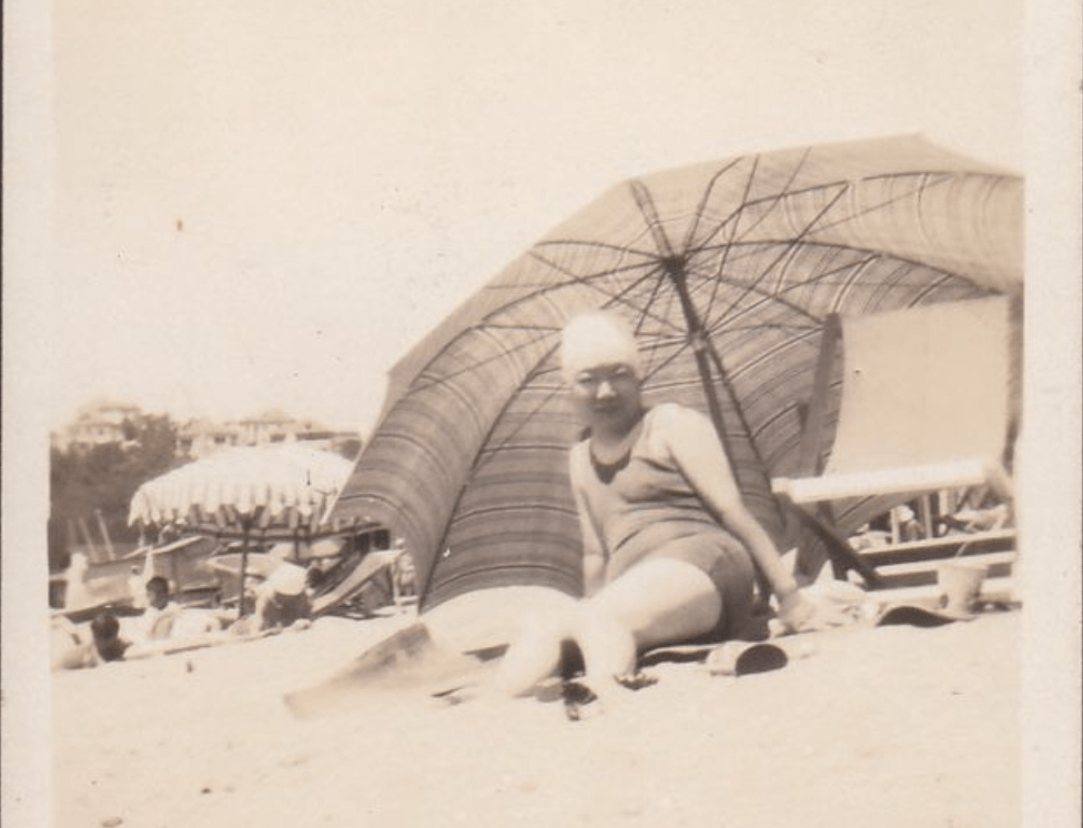 这张照片拍摄于上世纪40年代,画面中的女孩穿着泳装,慵懒地斜躺在沙滩上,一把遮阳伞为她遮挡着刺眼的阳光。那时,能够享受如此惬意生活的,大概是富贵人家的太太吧!照片里的一切都显得悠闲而宁静,仿佛她正处于一个无忧无虑的世界。