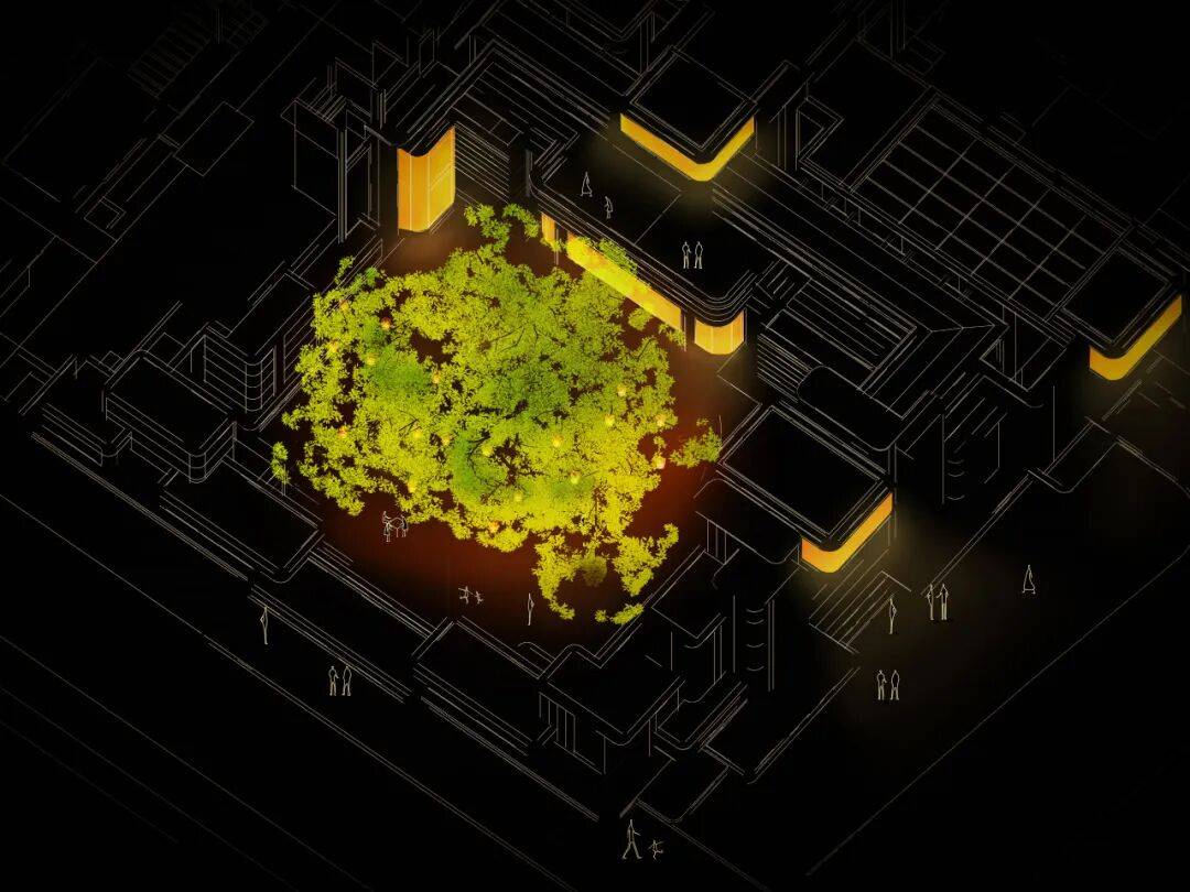 ▲地实景鸟瞰©IN-FIELD studio 惬意的生活围场景绕着榕树发生 榕树广场不仅是回家的通道,更像是整个社区的呼吸中心。它联结着地上与地下,一侧是安静的下午茶室,另一侧藏着为孩子准备的童趣树屋。人们可以在这里停一停,让思绪从城市的喧闹中慢慢沉淀,重新找回生活的节奏。家,永远有一位“老人”守候。