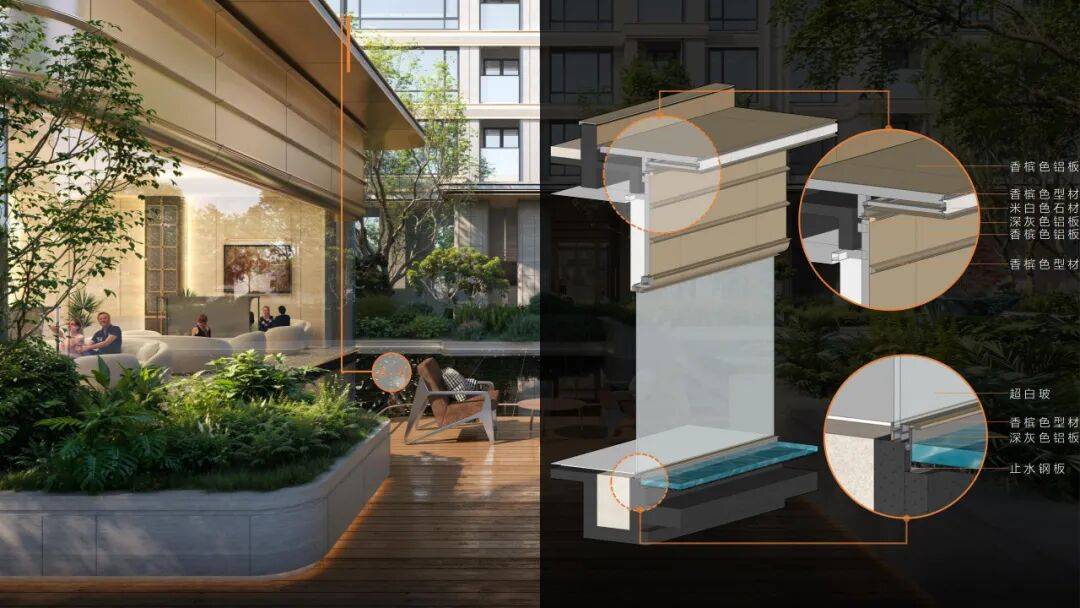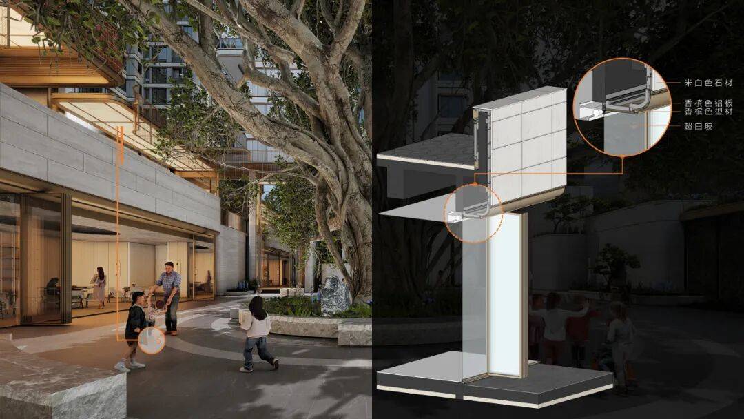 材料与节点分析 ©ZEN 04. 回到生活 回到榕树下 厦门中海·环东雲起的设计不仅回应了闽南传统生活形态的空间特征,也在探索于当代设计语境下,建筑如何在城市与自然之间建立平衡关系。项目通过对院落、榕树及材料语言的重构,呈现出一种回归生活本质的居住实践。