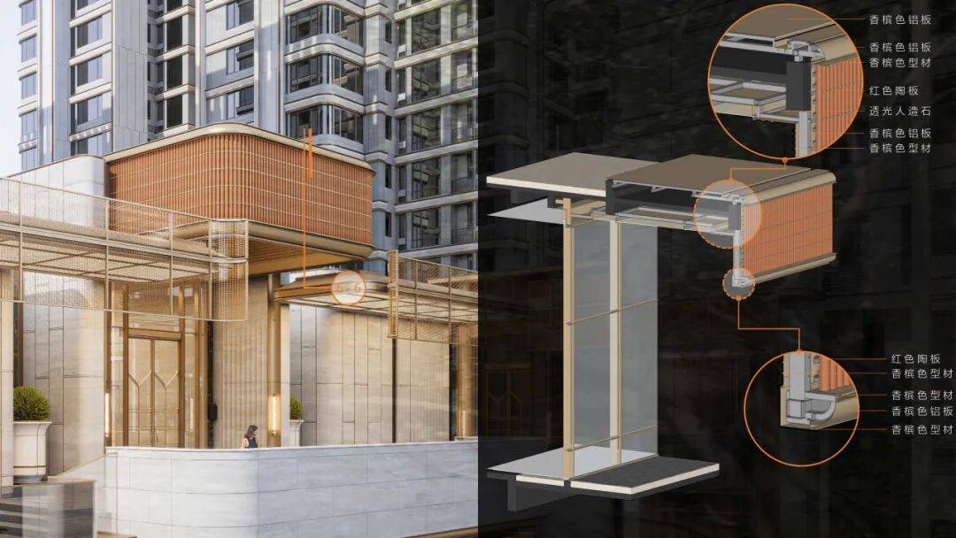 ▲项目主材 ©ZEN 这些材料,不只是建筑的外在表达,更是时间与地域的延续 人行与车行入口采用砖红色陶板铺面,那是厦门常见的红砖色调。阳光照上去时明亮,阴影里又显得柔和,这种熟悉的颜色自然地延续了城市的气质。