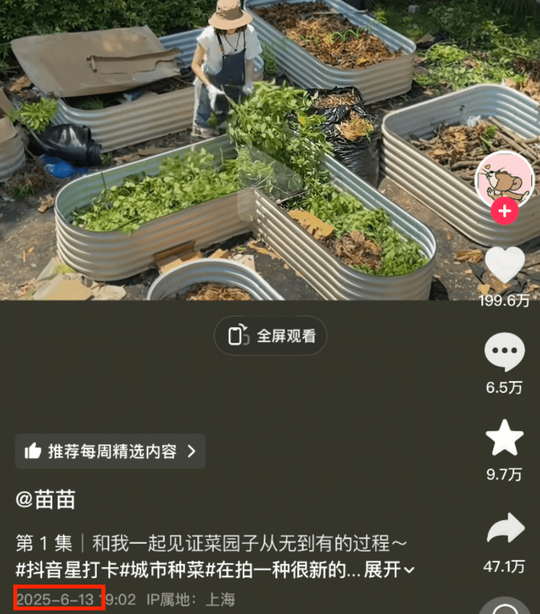 正是这股娴熟又麻利的劲,让她「农场主理人」的身份更令人信服, 今年6月份,苗苗开始更新自己的种菜日记👇