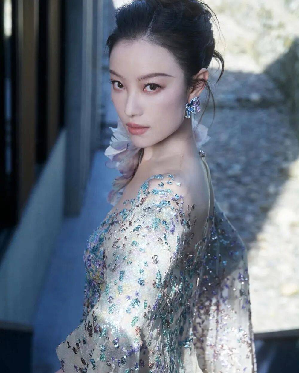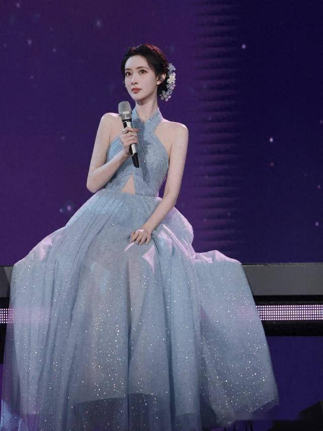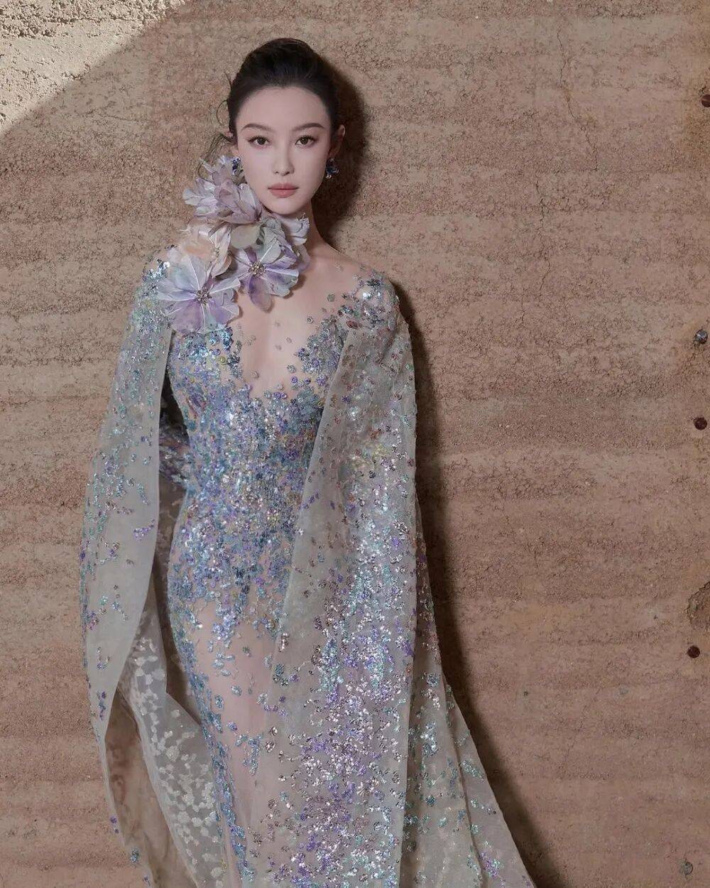 杨超越的发型和妆容也和这套礼服搭配得恰到好处。她把头发高高盘起,露出光洁的额头和修长的脖颈,显得干练又优雅。妆容精致又自然,眼妆深邃有神,唇色鲜艳红润,让她看起来既美丽又自信。