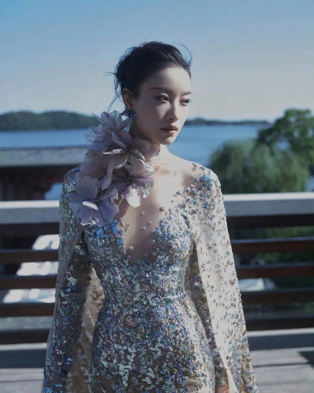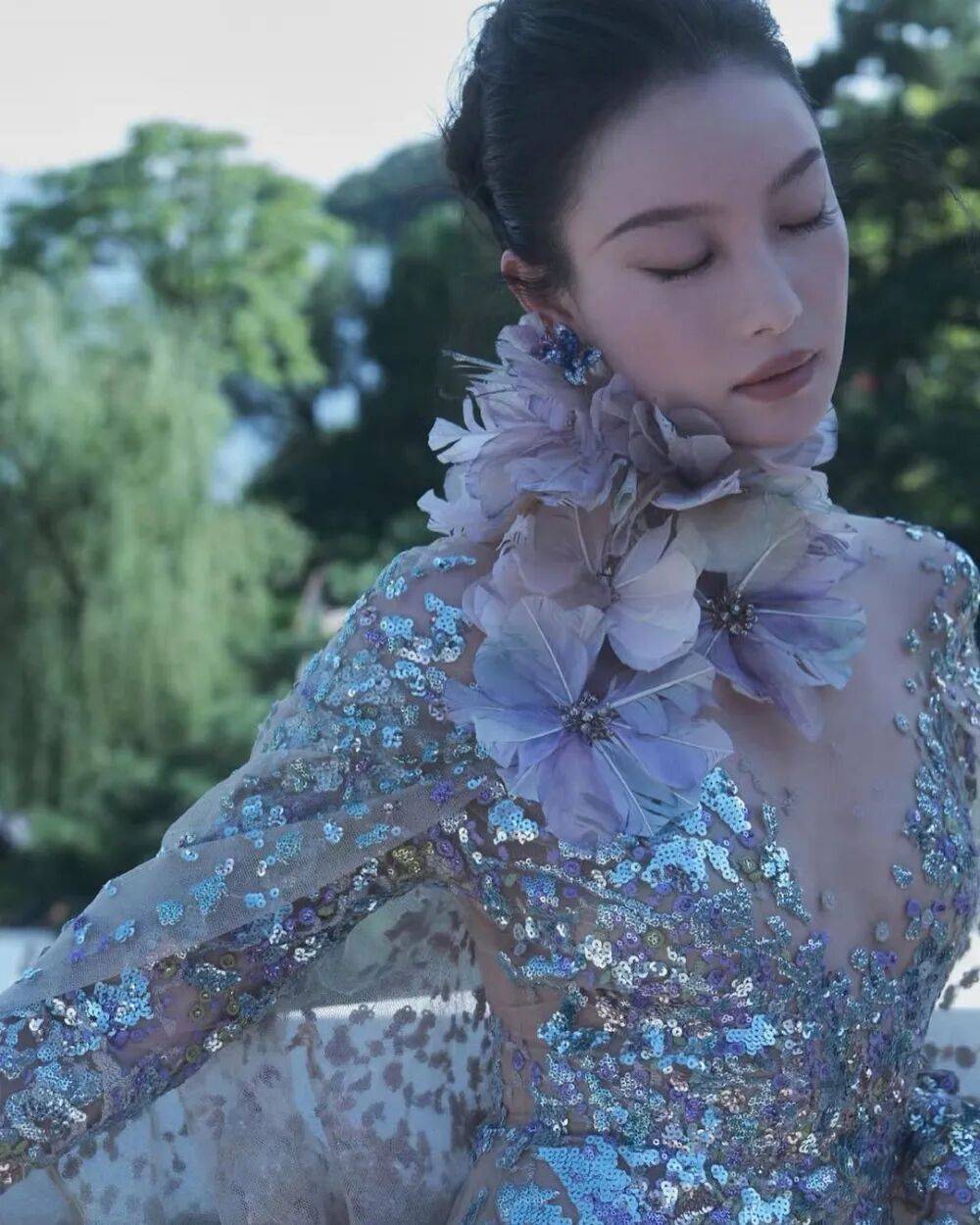 如果说张予曦的粉花发簪带给人一种猫咪公主般的精致感,那么刘亦菲的满天星簪花造型则令人眼前一亮。满天星本身是一种低调的花卉,通常在花束中充当配角,但当它出现在刘亦菲的头上时,却瞬间成为了聚光点。她原本就有着辨识度极高的五官,满天星的点缀让她更显贵气,简直如同从天而降的仙女。即使她脖间的红宝石项链原本是高定珠宝中的佼佼者,但在刘亦菲的美丽面前,也成了背景配角。
