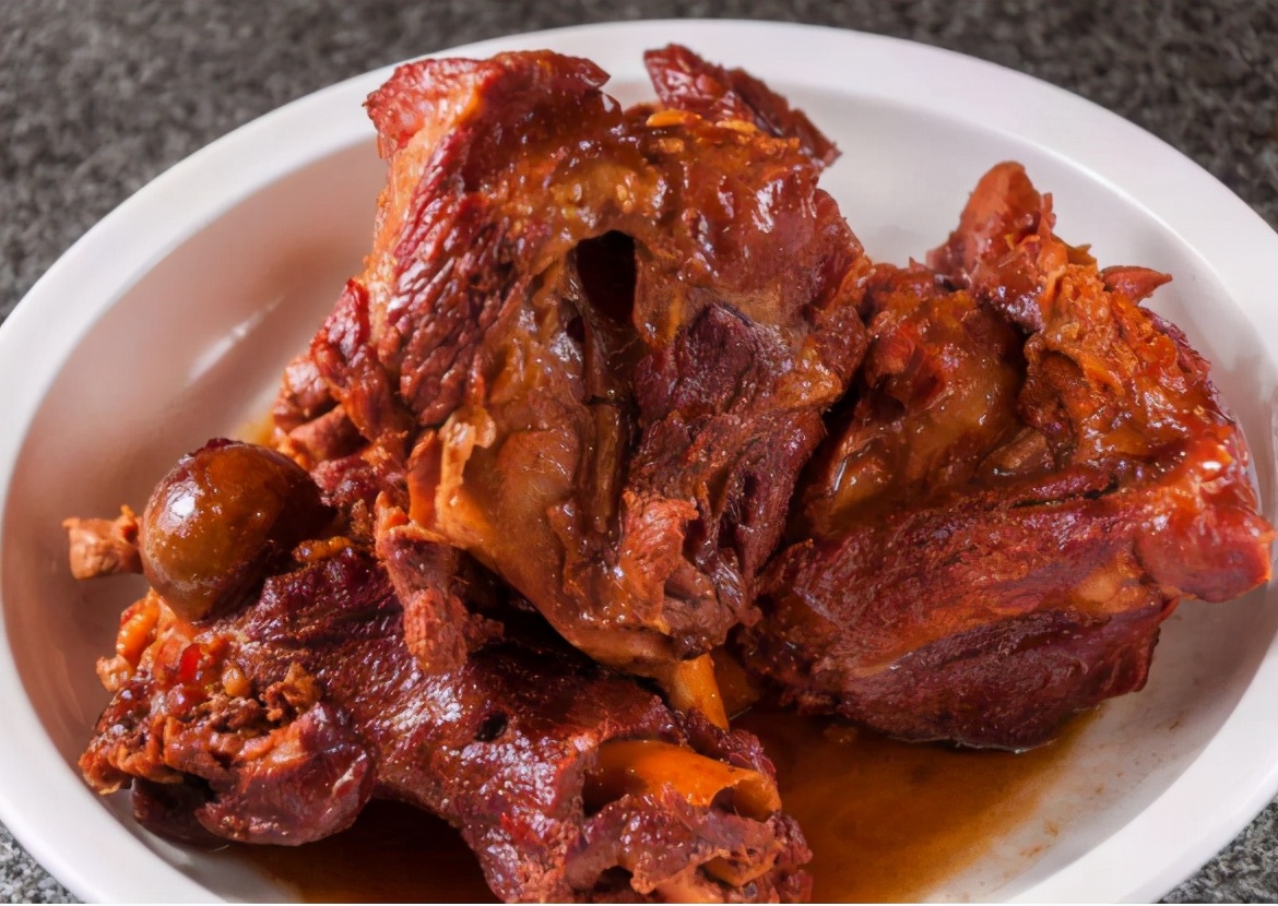 食材:牛腱子肉600克、白酱油25克、红辣椒丝20克、味精1克、香菜段5克、香油25克、蒜蓉10克、精盐1克、葱段10克、姜块5克、八角2枚、黄酒10克 做法: 1、将牛腱子肉洗净,漂去血水,用沸水烫—次,放 锅中,加清水淹没,置旺火上烧沸,撇去浮沫,加黄酒、八角、姜块、葱段、精盐,盖严盖,移至小火上煮至酥烂,以筷子可以戳穿为好,端下锅晾凉,取出牛肉。 2、将牛肉切成薄片,整齐地排在平盘中,将白酱油、味精、香油同放碗中调匀,浇在牛肉片上,撒上香菜段、红辣椒丝、蒜蓉,即可上桌。 酸汁猪手