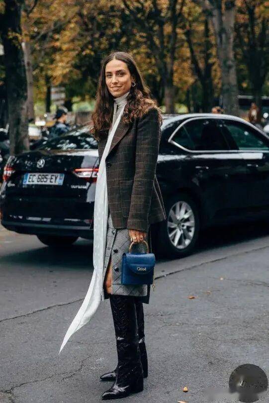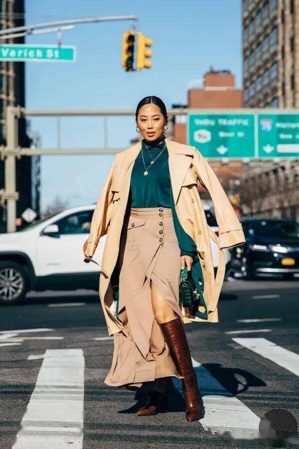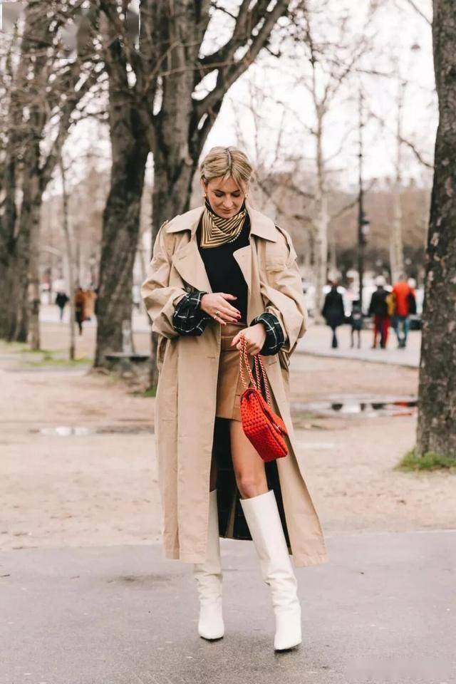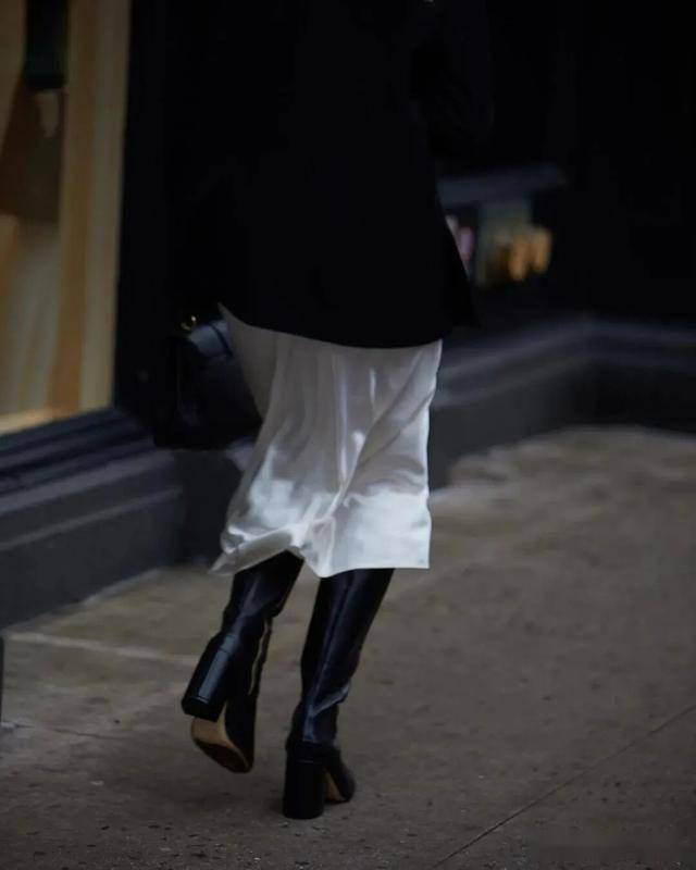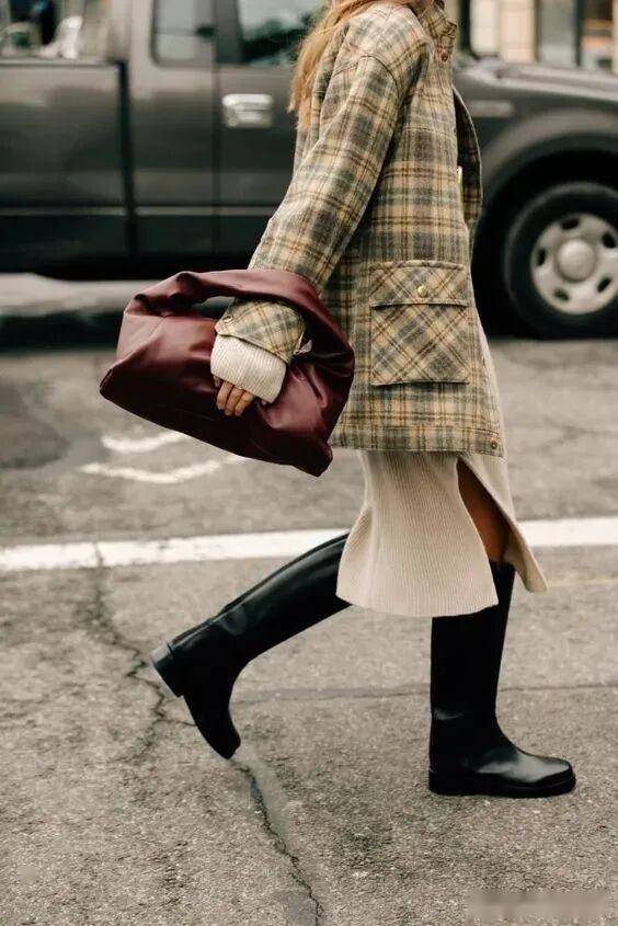 过膝盖长度的迷笛裙、百褶裙等随风飘摆的裙子,和骑士靴非常配,裙摆正好遮住靴口,保暖轻盈,又能穿出优雅~