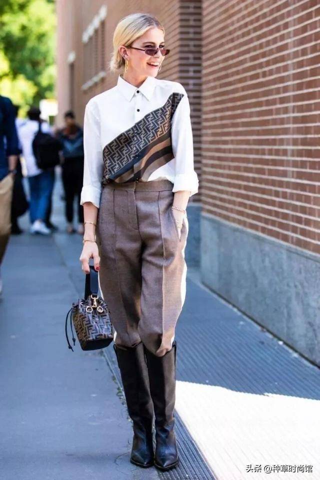 裤装最好选高腰的,也可以搭配皮带、腰包等配饰,有了它们的加持可以很好地打破秋冬造型惯有的沉闷感,时髦指数立马飙升。