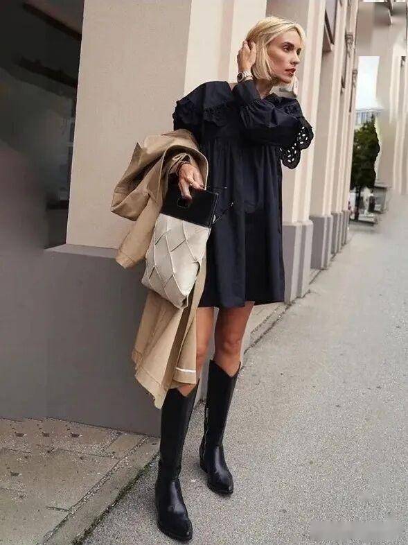 搭配裙装优雅 骑士靴和各种裙装也基本都能搭,首推骑士靴+中长裙的搭配。