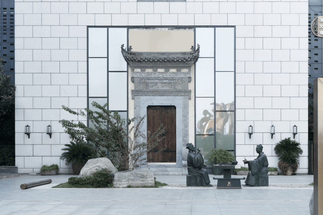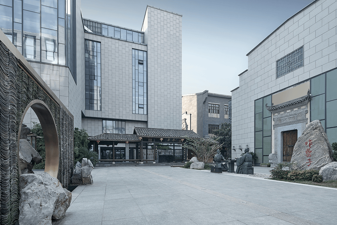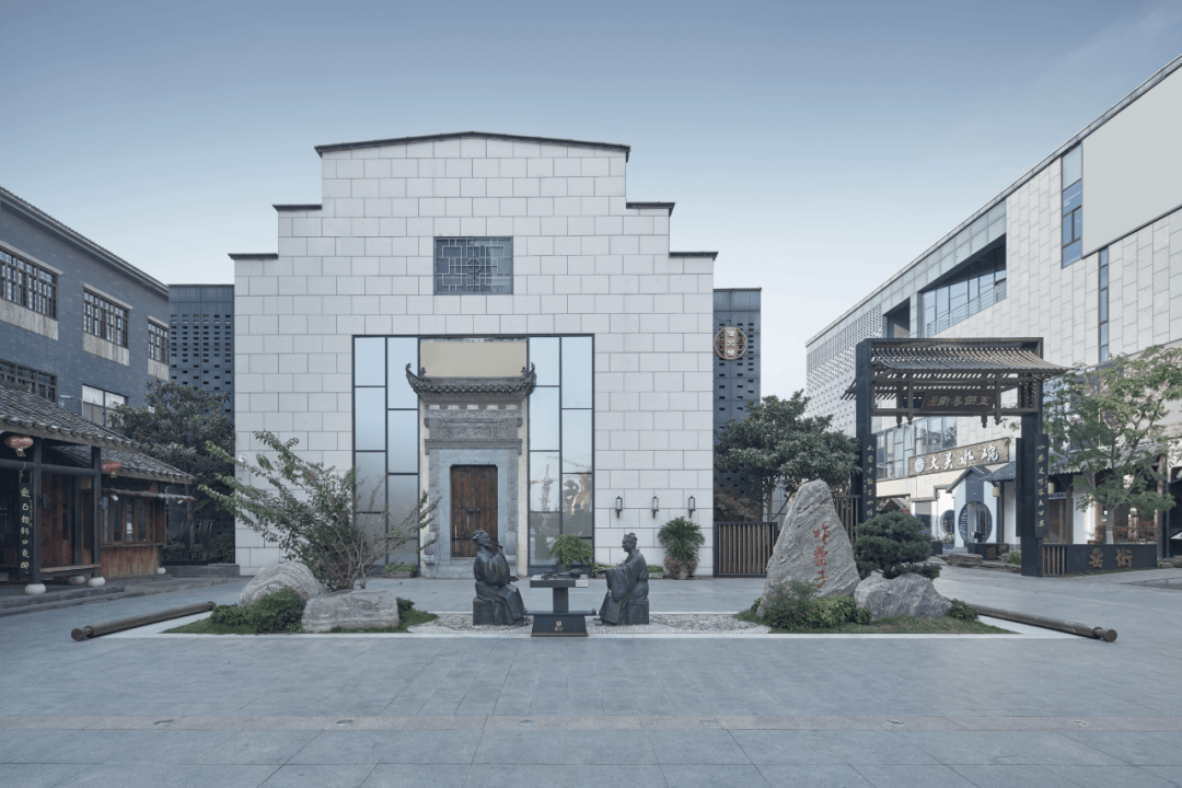 主街广场区域 开阔的前广场加深了这一场所的凝聚力,连通合肥巷与主街,为日后的场景留足施展空间,如节庆聚会、民俗活动等。不同层次的青砖铺装使建筑与周围环境层次分明、有机融合又富有变化,营造出一个既有浓厚民俗文化气息,同时充满艺术氛围的公共空间。
