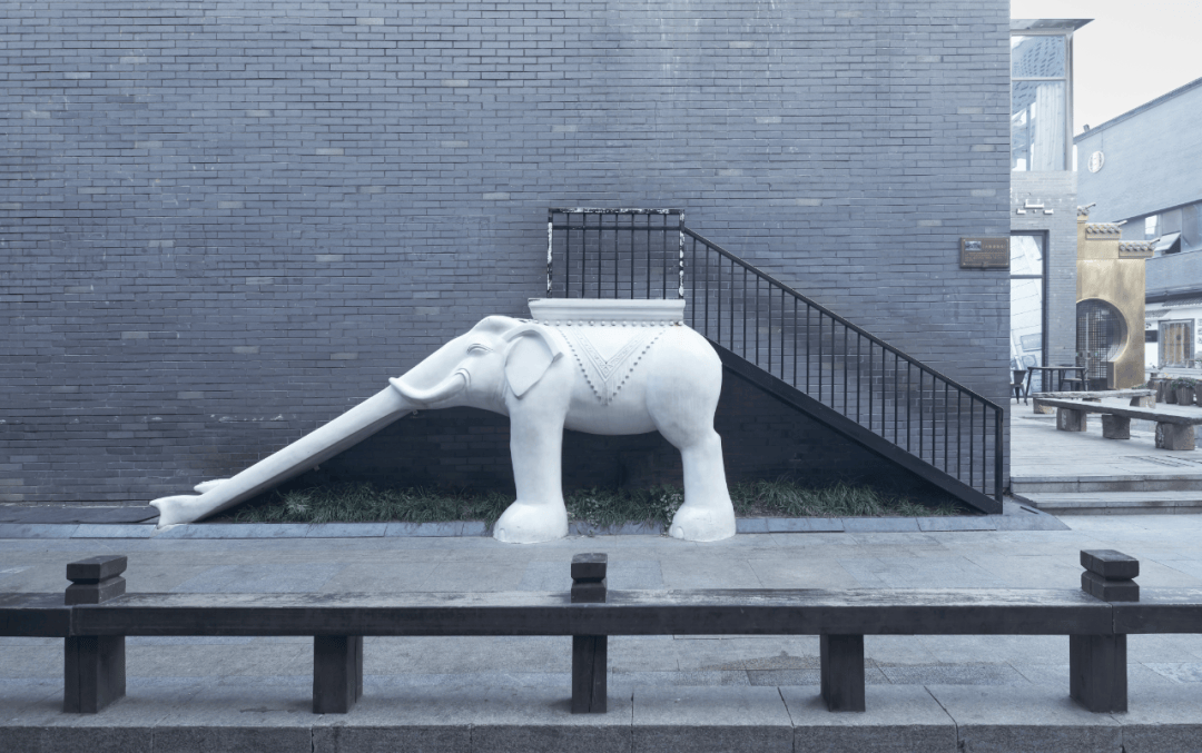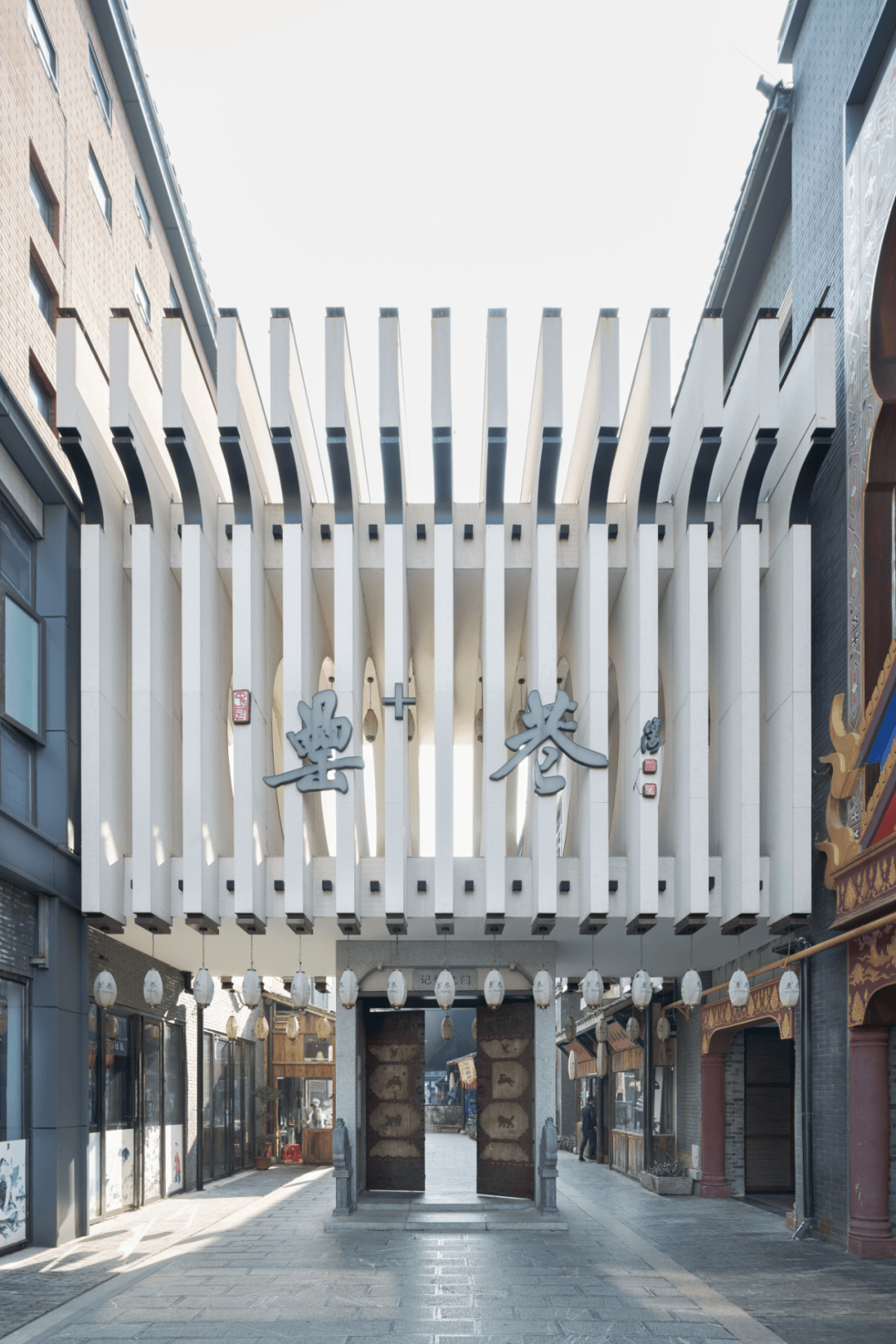 合肥巷内街 在街中加建连廊、罍门、合肥老城地图微观小品以及九狮苑微型雕塑来分隔小空间,将合肥一个个渐渐消逝的地名在此重生,以记忆之门、记忆之城、记忆之巷,增添合肥方言互动墙、活字印刷光影投射、逍遥津大象滑滑梯景墙等互动装置,从形、声、闻、味多维角度让周边市民增添互动参与的感官。