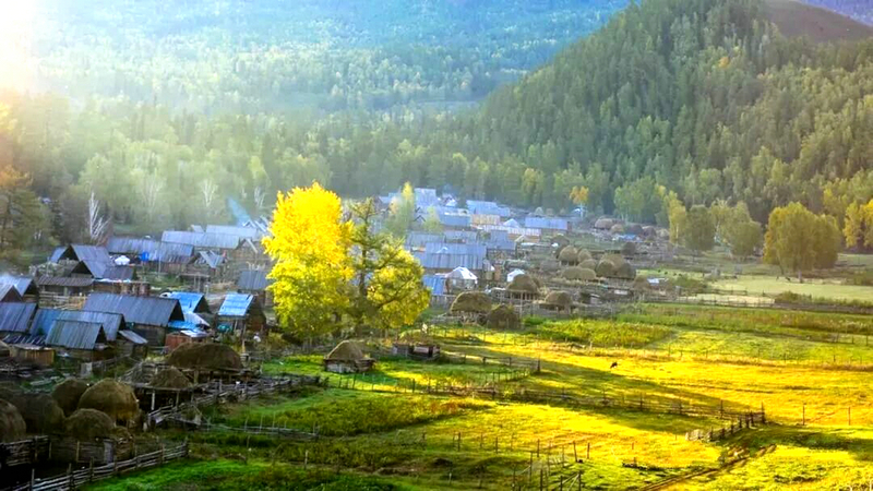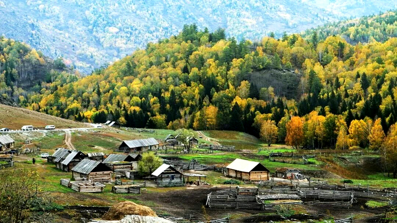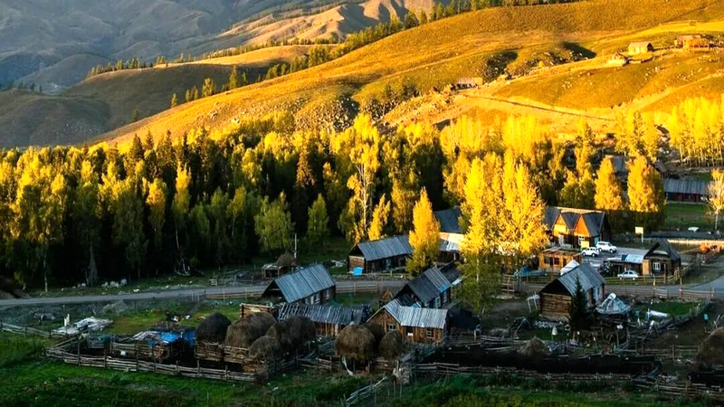 当第一缕秋风掠过阿尔泰山的脊背,白哈巴便悄然披上了金色的外衣。这个被群山环抱的图瓦人村落,像一块被岁月打磨的琥珀,在季节的流转中沉淀出最温润的光泽。