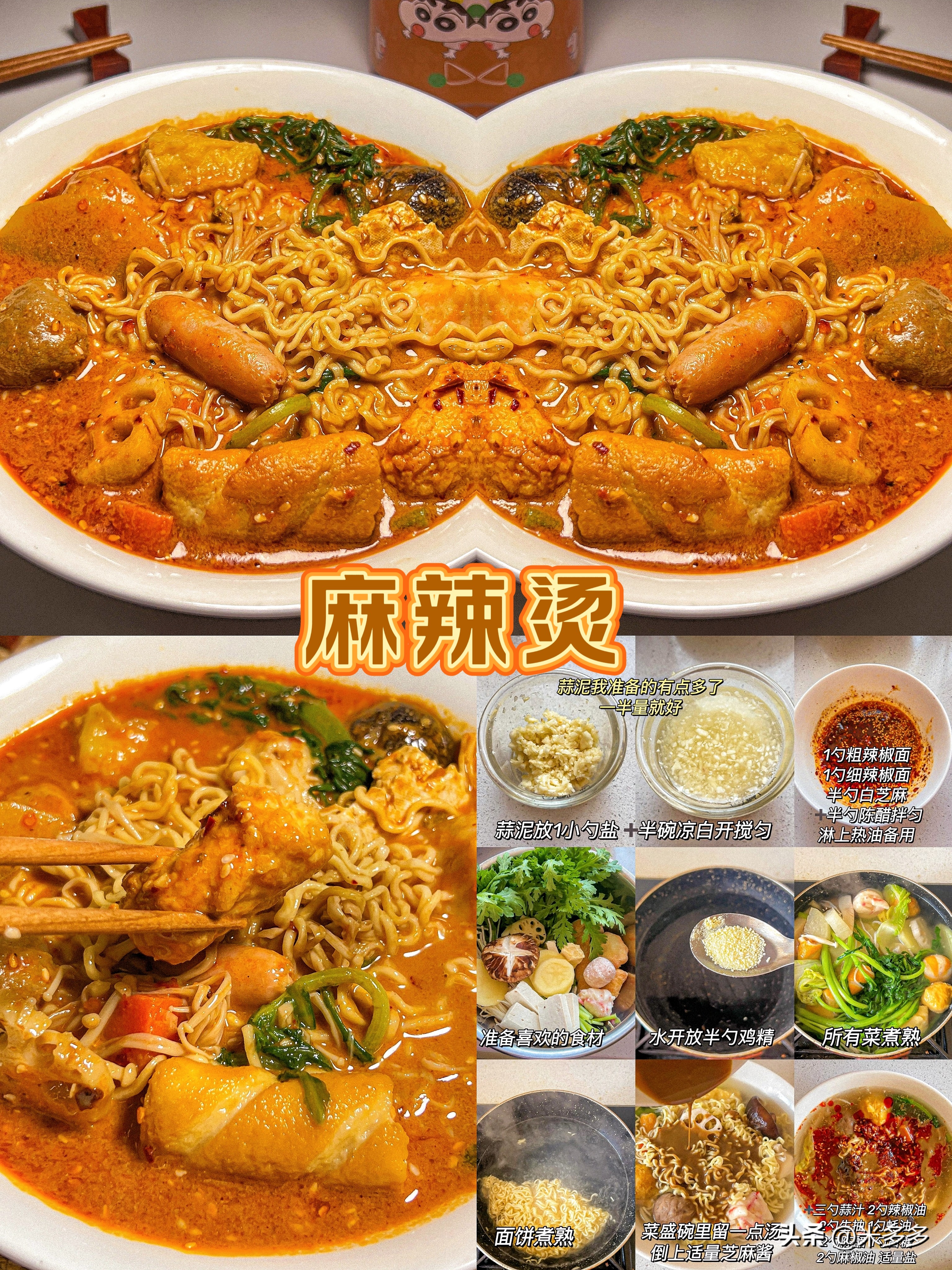 食材准备:面条、油泼辣子、葱、韭菜、猪油 酱汁调配:蒜末、油泼辣子、葱花、韭菜、半勺盐、一勺生抽、一勺鸡精、两勺陈醋、一勺熟油搅拌均匀备用。 麻辣烫