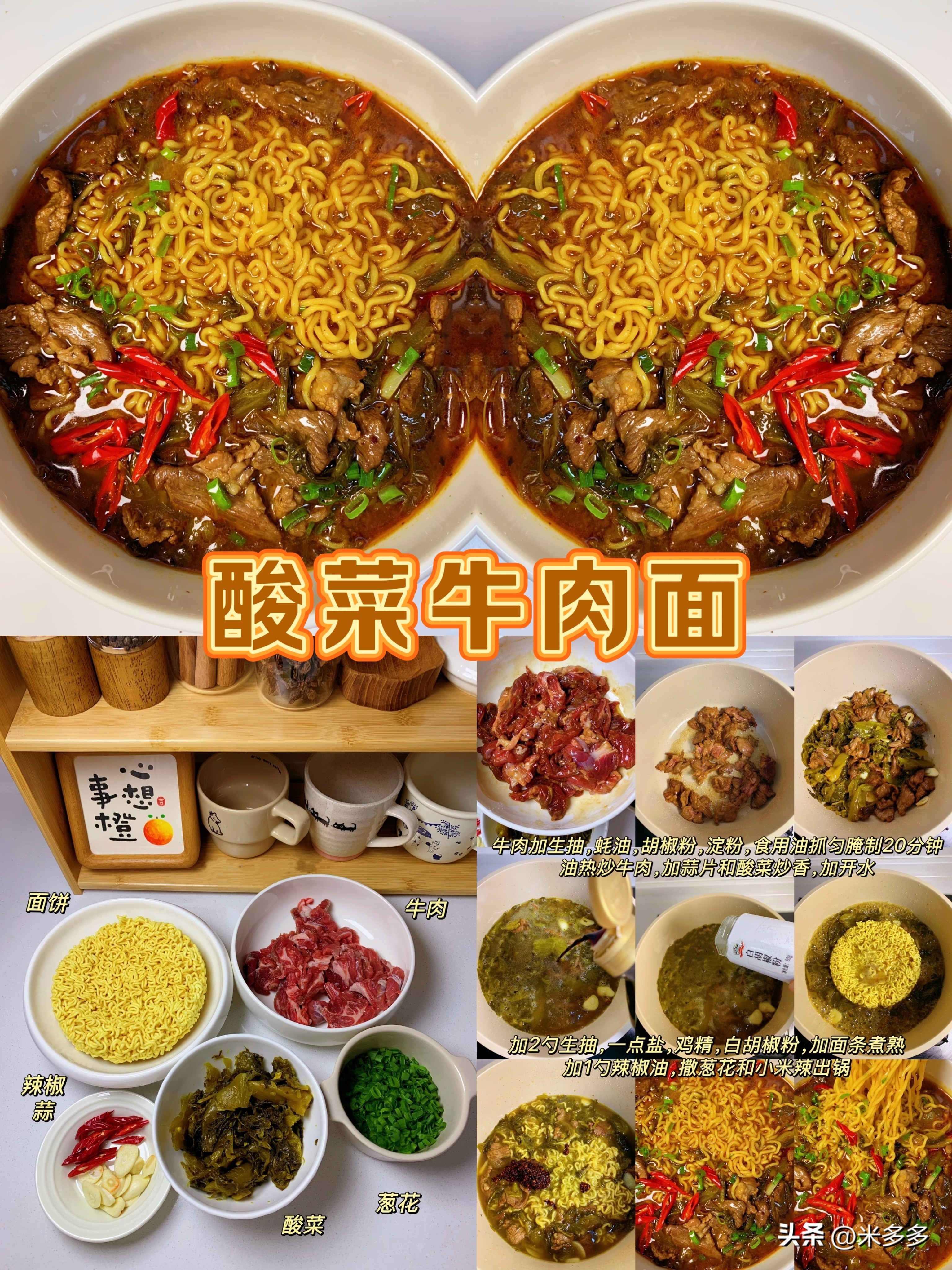 食材准备:面饼、牛肉、辣椒、蒜、酸菜、葱 牛肉腌制:牛肉加生抽、蚝油、胡椒粉、淀粉、食用油抓匀,腌制20分钟备用。 榨菜火腿汤面