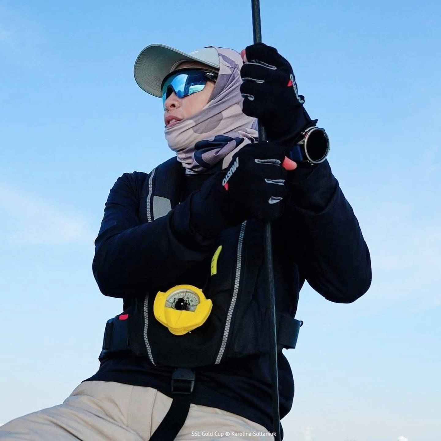 在帆船训练与比赛中,苏提达的穿搭完美诠释了“功能大于形式”的原则。她选择的黑色防水防风特殊航海服,采用高透气、高耐磨的专业面料,能够有效抵御海上的风浪与水汽,保障运动安全。