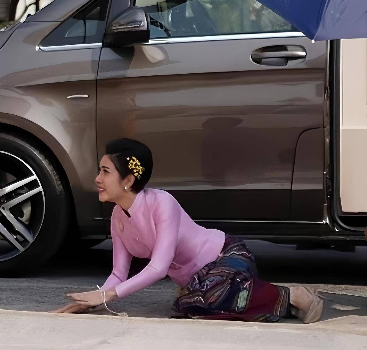 她懂得在权力面前保持谦卑,哪怕自己贵为王后,在公开场合见到国王的妹妹诗琳通公主,依然会毫不犹豫地以跪姿交谈,给足了这位王室长公主面子。