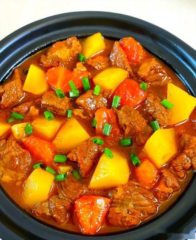 步骤 1. 牛肉洗净切成大小均匀的块,放入清水中浸泡30分钟,泡出血水后捞出沥干水分。 2. 番茄顶部划十字,用开水烫一下,去皮后切成小块;土豆去皮洗净切成滚刀块,洋葱切成小块,生姜和大蒜切末备用。 3. 锅中倒入适量食用油,油热后放入牛肉块,小火煎至表面微黄,盛出备用。 4. 锅中留少许底油,放入姜末、蒜末、八角、桂皮、香叶炒香,接着加入洋葱块翻炒至变软。 5. 放入番茄块,翻炒出汁后加入2勺生抽、半勺老抽、1勺料酒和适量冰糖,翻炒均匀。 6. 加入煎好的牛肉块,翻炒上色后倒入适量清水,没过牛肉,大火煮开后转小火炖煮1小时左右。 7. 放入土豆块,继续炖煮20 - 30分钟,至土豆软烂,牛肉熟透,根据个人口味加入适量盐调味,大火收汁即可。