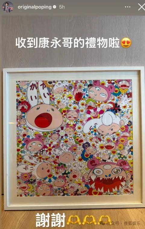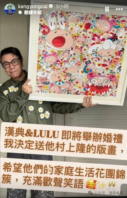还是“康熙”眼神毒辣! 不过,人虽没来,礼都到了。 蔡康永送给了陈汉典和Lulu一幅村上隆的版画作为贺礼,希望夫妻俩生活花团锦簇,充满欢声笑语。