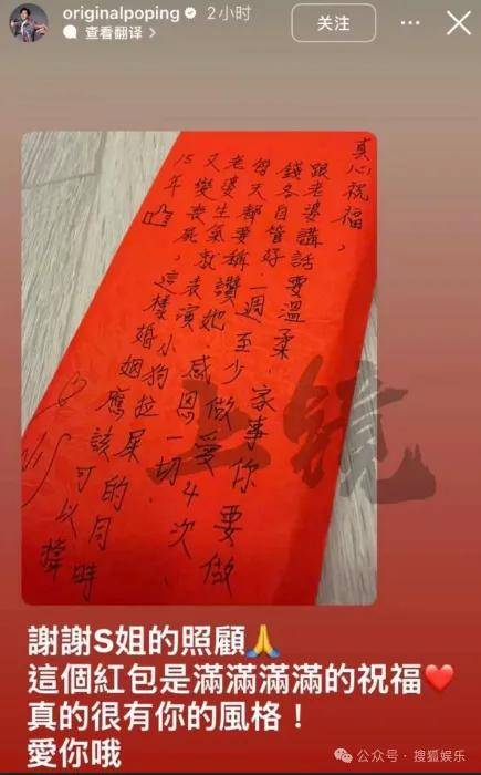 而小S这边虽然也没有到场,但礼金到咯。 从陈汉典晒出的红包照可以看到,S很真诚的写了祝福语,嘱咐陈汉典和老婆讲话要温柔,要做家务,还有.......总之,就是很符合S搞怪的风格啦