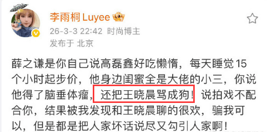 谁能想到薛之谦和前女友李雨桐演绎的《雷神之锤》时隔九年还能出续集啊,目前“剧情”愈演愈烈,似有超过第一部的迹象...... 这几天,李雨桐把微博当“机关枪”一样用,不管三七二十一,对着薛之谦一通扫射,而这招,对于她来说似乎生效了。 3月2号,她大骂薛之谦的时候,爆料称薛之谦曾在背后说张杰唱歌土。