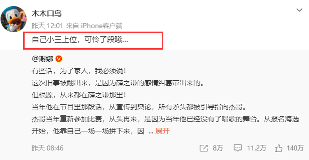 而段曦的发声,彻底扭转了薛之谦单方面挨骂的局面,很多人开始喊话杰娜夫妻道歉。